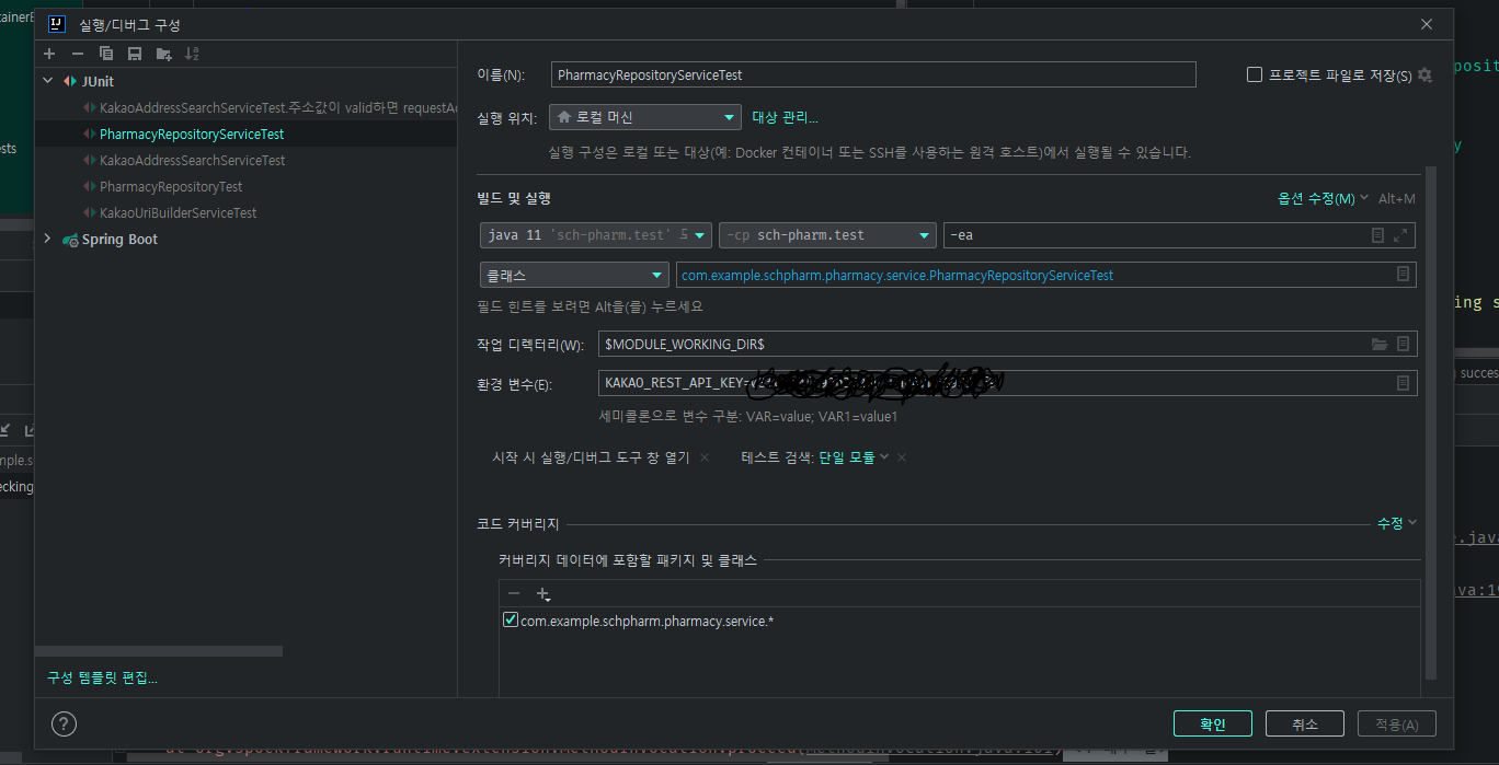 실행/디버그 수정에 환경변수를 선언해줘야한다!
