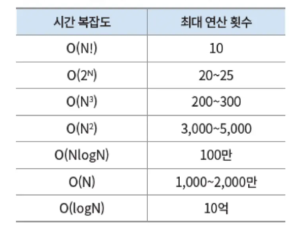 - best case, average case, worst case 가 있지만 제한 시간 내에 결과 값이 나와야 하는 코딩테스트의 목적에 부합한 최악의 상황을 기준으로 시간 복잡도를 측정해야 한다.