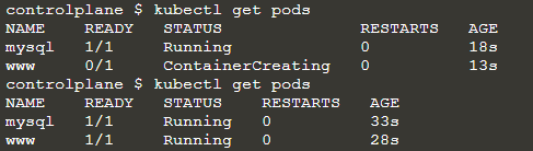 ip=$(kubectl get pod www2 -o yaml |grep podIP | awk '{split($0,a,":"); print a[2]}'); curl $ip